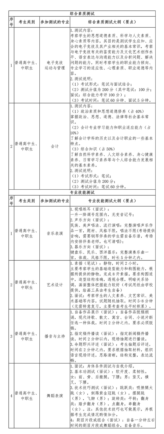 1.普通类考生:文化考试+综合素质测试。