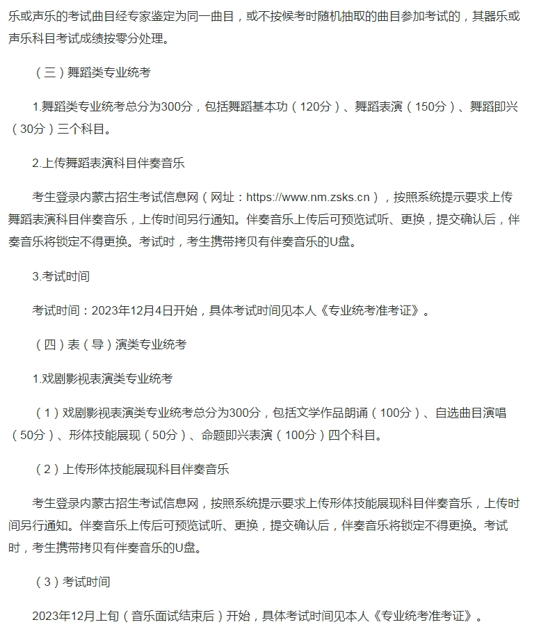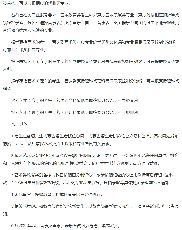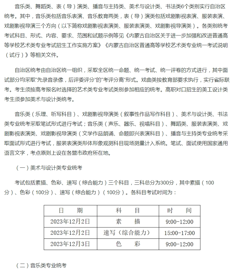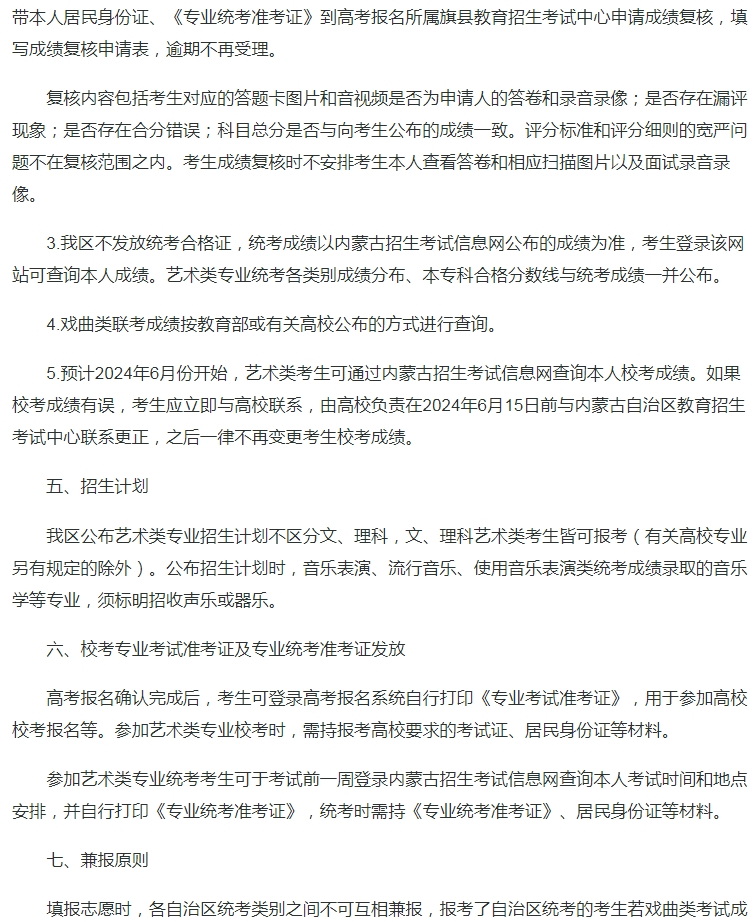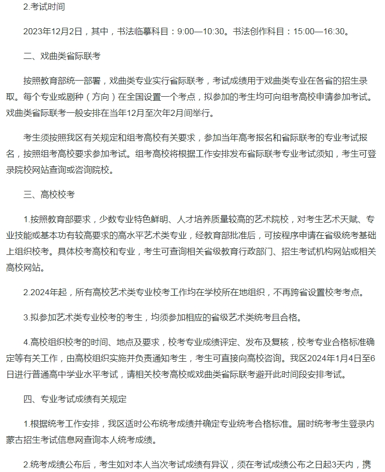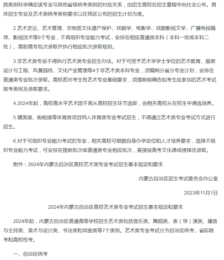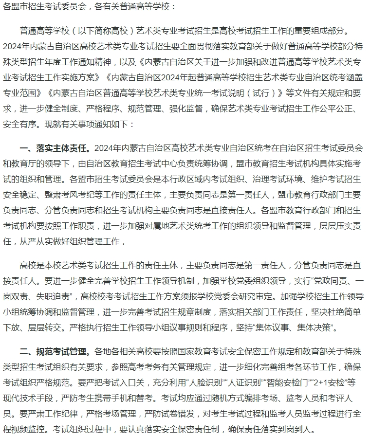 内蒙古:关于做好2024年普通高等学校艺术类专业考试招生工作的通知