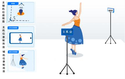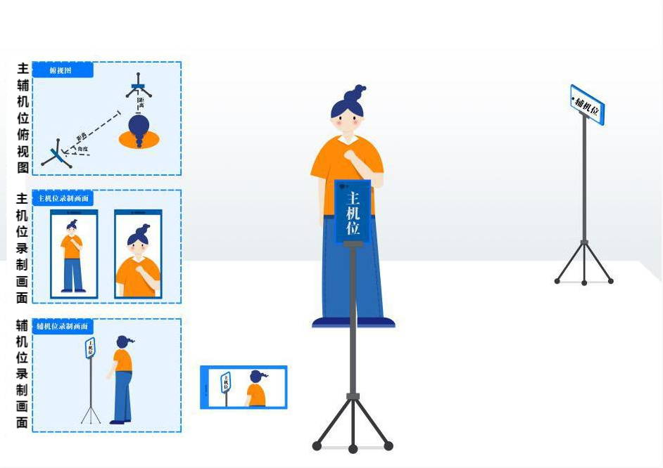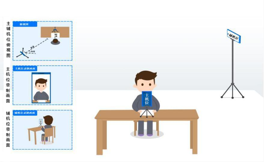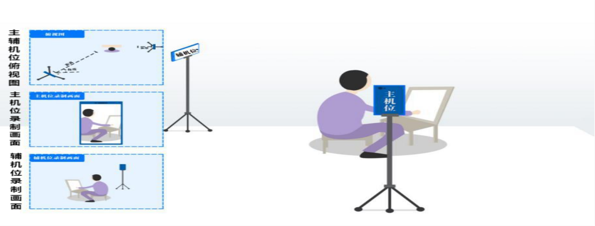 [主机位根据考试科目要求确定拍摄方向(横屏或竖屏)及拍摄范围,辅机位横屏拍摄(考试全场监控)]