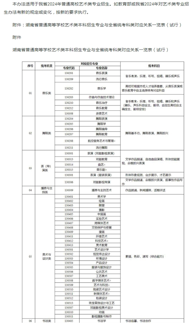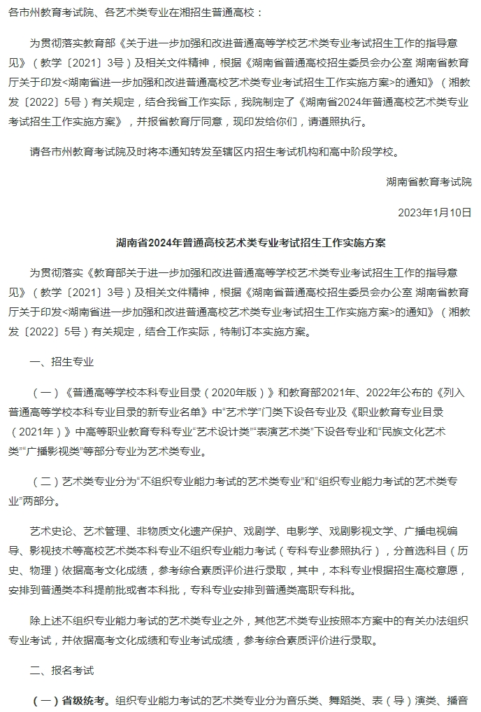 湖南:关于印发《湖南省2024年普通高校艺术类专业考试招生工作实施方案》的通知