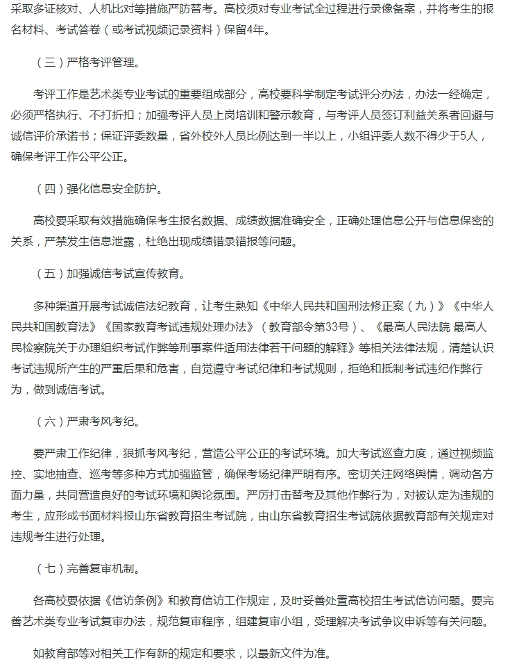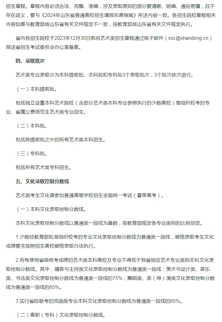 山东:关于印发山东省2024年普通高等学校艺术类专业招生工作实施方案的通知